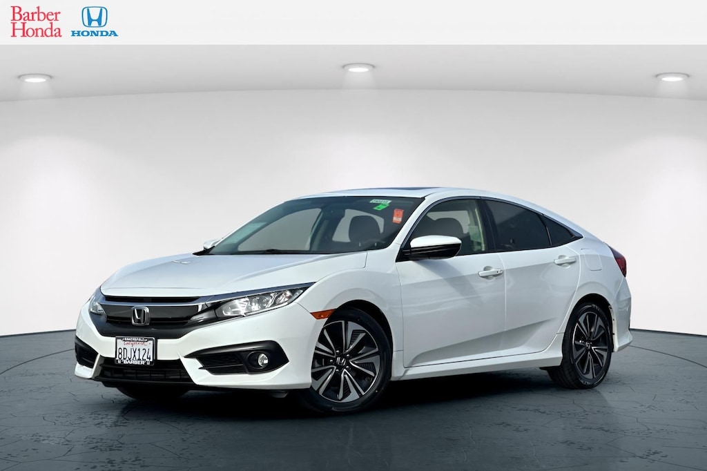 Better deals, finer service! This 2018 White Honda Civic EX-T FWD is well equipped and includes these features and benefits: Cloth, 4-Wheel Disc Brakes, 8 Speakers, ABS brakes, Air Conditioning, Alloy wheels, AM/FM radio: SiriusXM, Apple CarPlay/Android Auto, Automatic temperature control, Brake assist, Bumpers: body-color, Cloth Seat Trim, Compass, Delay-off headlights, Driver door bin, Driver vanity mirror, Dual front impact airbags, Dual front side impact airbags, Electronic Stability Control, Emergency communication system: HondaLink, Exterior Parking Camera Rear, Four wheel independent suspension, Front anti-roll bar, Front Bucket Seats, Front Center Armrest, Front dual zone A/C, Front fog lights, Front reading lights, Fully automatic headlights, Heated door mirrors, Heated front seats, Illuminated entry, Low tire pressure warning, Occupant sensing airbag, Outside temperature display, Overhead airbag, Panic alarm, Passenger door bin, Passenger vanity mirror, Power door mirrors, Power moonroof, Power steering, Power windows, Radio data system, Radio: 180-Watt AM/FM/HD/SiriusXM Audio System, Rear anti-roll bar, Rear seat center armrest, Rear window defroster, Reclining Heated Front Bucket Seats, Remote keyless entry, Security system, Speed control, Speed-sensing steering, Speed-Sensitive Wipers, Split folding rear seat, Spoiler, Steering wheel mounted audio controls, Tachometer, Telescoping steering wheel, Tilt steering wheel, Traction control, Trip computer, and Variably intermittent wipers. Cloth, 4-Wheel Disc Brakes, 8 Speakers, ABS brakes, Air Conditioning, Alloy wheels, AM/FM radio: SiriusXM, Apple CarPlay/Android Auto, Automatic temperature control, Brake assist, Bumpers: body-color, Cloth Seat Trim, Compass, Delay-off headlights, Driver door bin, Driver vanity mirror, Dual front impact airbags, Dual front side impact airbags, Electronic Stability Control, Emergency communication system: HondaLink, Exterior Parking Camera Rear, Four wheel independent suspension, Front anti-roll bar, Front Bucket Seats, Front Center Armrest, Front dual zone A/C, Front fog lights, Front reading lights, Fully automatic headlights, Heated door mirrors, Heated front seats, Illuminated entry, Low tire pressure warning, Occupant sensing airbag, Outside temperature display, Overhead airbag, Panic alarm, Passenger door bin, Passenger vanity mirror, Power door mirrors, Power moonroof, Power steering, Power windows, Radio data system, Radio: 180-Watt AM/FM/HD/SiriusXM Audio System, Rear anti-roll bar, Rear seat center armrest, Rear window defroster, Reclining Heated Front Bucket Seats, Remote keyless entry, Security system, Speed control, Speed-sensing steering, Speed-Sensitive Wipers, Split folding rear seat, Spoiler, Steering wheel mounted audio controls, Tachometer, Telescoping steering wheel, Tilt steering wheel, Traction control, Trip computer, Variably intermittent wipers.