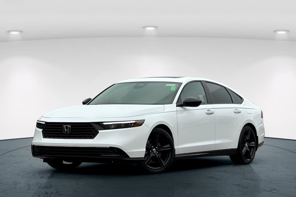 Better deals, finer service! This 2024 Platinum White Pearl Honda Accord Hybrid Sport-L FWD is well equipped and includes these features and benefits: 2.0L 16V DOHC, 4-Wheel Disc Brakes, 8 Speakers, ABS brakes, Adaptive Cruise Control: Adaptive Cruise Control (ACC) with Low-Speed Follow, Air Conditioning, Alloy wheels, AM/FM radio, Apple CarPlay/Android Auto, Auto High-beam Headlights, Automatic temperature control, Blind Spot Information (BSI) System warning, Brake assist, Bumpers: body-color, Compass, Delay-off headlights, Driver door bin, Driver vanity mirror, Dual front impact airbags, Dual front side impact airbags, Electronic Stability Control, Emergency communication system: HondaLink, Exterior Parking Camera Rear, Four wheel independent suspension, Front anti-roll bar, Front Bucket Seats, Front Center Armrest, Front dual zone A/C, Front reading lights, Fully automatic headlights, Heated Front Bucket Seats, Heated front seats, Illuminated entry, Knee airbag, Lane departure: Lane Keeping Assist System (LKAS) active, Leather Shift Knob, Leather steering wheel, Leather-Trimmed Seat Trim, Low tire pressure warning, Memory seat, Occupant sensing airbag, Outside temperature display, Overhead airbag, Overhead console, Panic alarm, Passenger door bin, Passenger vanity mirror, Power door mirrors, Power driver seat, Power moonroof, Power passenger seat, Power steering, Power windows, Radio data system, Radio: 180-Watt Audio System, Rear anti-roll bar, Rear reading lights, Rear seat center armrest, Rear side impact airbag, Rear window defroster, Remote keyless entry, Security system, Speed control, Speed-sensing steering, Speed-Sensitive Wipers, Split folding rear seat, Spoiler, Steering wheel mounted audio controls, Telescoping steering wheel, Tilt steering wheel, Traction control, Trip computer, Variably intermittent wipers, and Wheels: 19" x 8.5J Matte Berlina Black. 2.0L 16V DOHC, 4-Wheel Disc Brakes, 8 Speakers, ABS brakes, Adaptive Cruise Control: Adaptive Cruise Control (ACC) with Low-Speed Follow, Air Conditioning, Alloy wheels, AM/FM radio, Apple CarPlay/Android Auto, Auto High-beam Headlights, Automatic temperature control, Blind Spot Information (BSI) System warning, Brake assist, Bumpers: body-color, Compass, Delay-off headlights, Driver door bin, Driver vanity mirror, Dual front impact airbags, Dual front side impact airbags, Electronic Stability Control, Emergency communication system: HondaLink, Exterior Parking Camera Rear, Four wheel independent suspension, Front anti-roll bar, Front Bucket Seats, Front Center Armrest, Front dual zone A/C, Front reading lights, Fully automatic headlights, Heated Front Bucket Seats, Heated front seats, Illuminated entry, Knee airbag, Lane departure: Lane Keeping Assist System (LKAS) active, Leather Shift Knob, Leather steering wheel, Leather-Trimmed Seat Trim, Low tire pressure warning, Memory seat, Occupant sensing airbag, Outside temperature display, Overhead airbag, Overhead console, Panic alarm, Passenger door bin, Passenger vanity mirror, Power door mirrors, Power driver seat, Power moonroof, Power passenger seat, Power steering, Power windows, Radio data system, Radio: 180-Watt Audio System, Rear anti-roll bar, Rear reading lights, Rear seat center armrest, Rear side impact airbag, Rear window defroster, Remote keyless entry, Security system, Speed control, Speed-sensing steering, Speed-Sensitive Wipers, Split folding rear seat, Spoiler, Steering wheel mounted audio controls, Telescoping steering wheel, Tilt steering wheel, Traction control, Trip computer, Variably intermittent wipers, Wheels: 19" x 8.5J Matte Berlina Black.
