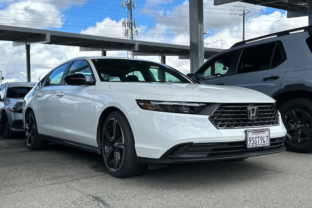 Better deals, finer service! This 2024 White Honda Accord Hybrid Sport FWD is well equipped and includes these features and benefits: 2.0L 16V DOHC, 4-Wheel Disc Brakes, 8 Speakers, ABS brakes, Adaptive Cruise Control: Adaptive Cruise Control (ACC) with Low-Speed Follow, Air Conditioning, Alloy wheels, AM/FM radio, Apple CarPlay/Android Auto, Auto High-beam Headlights, Automatic temperature control, Blind Spot Information (BSI) System warning, Brake assist, Bumpers: body-color, Compass, Delay-off headlights, Driver door bin, Driver vanity mirror, Dual front impact airbags, Dual front side impact airbags, Electronic Stability Control, Emergency communication system: HondaLink, Exterior Parking Camera Rear, Fabric Seat Trim, Four wheel independent suspension, Front anti-roll bar, Front Bucket Seats, Front Center Armrest, Front dual zone A/C, Front reading lights, Fully automatic headlights, Illuminated entry, Knee airbag, Lane departure: Lane Keeping Assist System (LKAS) active, Leather Shift Knob, Leather steering wheel, Low tire pressure warning, Occupant sensing airbag, Outside temperature display, Overhead airbag, Overhead console, Panic alarm, Passenger door bin, Passenger vanity mirror, Power door mirrors, Power driver seat, Power moonroof, Power steering, Power windows, Radio data system, Radio: 180-Watt Audio System, Rear anti-roll bar, Rear reading lights, Rear seat center armrest, Rear side impact airbag, Rear window defroster, Remote keyless entry, Security system, Speed control, Speed-sensing steering, Speed-Sensitive Wipers, Split folding rear seat, Spoiler, Steering wheel mounted audio controls, Telescoping steering wheel, Tilt steering wheel, Traction control, Trip computer, Variably intermittent wipers, and Wheels: 19" x 8.5J Berlina Black. 2.0L 16V DOHC, 4-Wheel Disc Brakes, 8 Speakers, ABS brakes, Adaptive Cruise Control: Adaptive Cruise Control (ACC) with Low-Speed Follow, Air Conditioning, Alloy wheels, AM/FM radio, Apple CarPlay/Android Auto, Auto High-beam Headlights, Automatic temperature control, Blind Spot Information (BSI) System warning, Brake assist, Bumpers: body-color, Compass, Delay-off headlights, Driver door bin, Driver vanity mirror, Dual front impact airbags, Dual front side impact airbags, Electronic Stability Control, Emergency communication system: HondaLink, Exterior Parking Camera Rear, Fabric Seat Trim, Four wheel independent suspension, Front anti-roll bar, Front Bucket Seats, Front Center Armrest, Front dual zone A/C, Front reading lights, Fully automatic headlights, Illuminated entry, Knee airbag, Lane departure: Lane Keeping Assist System (LKAS) active, Leather Shift Knob, Leather steering wheel, Low tire pressure warning, Occupant sensing airbag, Outside temperature display, Overhead airbag, Overhead console, Panic alarm, Passenger door bin, Passenger vanity mirror, Power door mirrors, Power driver seat, Power moonroof, Power steering, Power windows, Radio data system, Radio: 180-Watt Audio System, Rear anti-roll bar, Rear reading lights, Rear seat center armrest, Rear side impact airbag, Rear window defroster, Remote keyless entry, Security system, Speed control, Speed-sensing steering, Speed-Sensitive Wipers, Split folding rear seat, Spoiler, Steering wheel mounted audio controls, Telescoping steering wheel, Tilt steering wheel, Traction control, Trip computer, Variably intermittent wipers, Wheels: 19" x 8.5J Berlina Black.