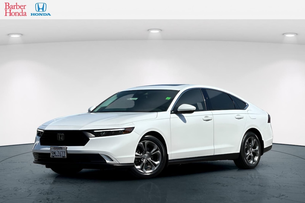 Better deals, finer service! This 2024 Platinum White Pearl Honda Accord EX FWD is well equipped and includes these features and benefits: Gray Cloth, 4-Wheel Disc Brakes, 8 Speakers, ABS brakes, Adaptive Cruise Control: Adaptive Cruise Control (ACC) with Low-Speed Follow, Air Conditioning, Alloy wheels, AM/FM radio, Apple CarPlay/Android Auto, Auto High-beam Headlights, Auto-dimming Rear-View mirror, Automatic temperature control, Blind Spot Information (BSI) System warning, Brake assist, Bumpers: body-color, Compass, Delay-off headlights, Driver door bin, Driver vanity mirror, Dual front impact airbags, Dual front side impact airbags, Electronic Stability Control, Emergency communication system: HondaLink Assist, Exterior Parking Camera Rear, Fabric Seat Trim, Four wheel independent suspension, Front anti-roll bar, Front Bucket Seats, Front Center Armrest, Front dual zone A/C, Front reading lights, Fully automatic headlights, Heated Front Bucket Seats, Heated front seats, Illuminated entry, Knee airbag, Lane departure: Lane Keeping Assist System (LKAS) active, Low tire pressure warning, Occupant sensing airbag, Outside temperature display, Overhead airbag, Overhead console, Panic alarm, Passenger door bin, Passenger vanity mirror, Power door mirrors, Power driver seat, Power moonroof, Power steering, Power windows, Radio data system, Radio: 180-Watt AM/FM Audio System, Rear anti-roll bar, Rear reading lights, Rear seat center armrest, Rear side impact airbag, Rear window defroster, Remote keyless entry, Security system, Speed control, Speed-sensing steering, Speed-Sensitive Wipers, Split folding rear seat, Steering wheel mounted audio controls, Tachometer, Telescoping steering wheel, Tilt steering wheel, Traction control, Trip computer, Variably intermittent wipers, and Wheels: 17" x 7.5" Pewter Gray. Gray Cloth, 4-Wheel Disc Brakes, 8 Speakers, ABS brakes, Adaptive Cruise Control: Adaptive Cruise Control (ACC) with Low-Speed Follow, Air Conditioning, Alloy wheels, AM/FM radio, Apple CarPlay/Android Auto, Auto High-beam Headlights, Auto-dimming Rear-View mirror, Automatic temperature control, Blind Spot Information (BSI) System warning, Brake assist, Bumpers: body-color, Compass, Delay-off headlights, Driver door bin, Driver vanity mirror, Dual front impact airbags, Dual front side impact airbags, Electronic Stability Control, Emergency communication system: HondaLink Assist, Exterior Parking Camera Rear, Fabric Seat Trim, Four wheel independent suspension, Front anti-roll bar, Front Bucket Seats, Front Center Armrest, Front dual zone A/C, Front reading lights, Fully automatic headlights, Heated Front Bucket Seats, Heated front seats, Illuminated entry, Knee airbag, Lane departure: Lane Keeping Assist System (LKAS) active, Low tire pressure warning, Occupant sensing airbag, Outside temperature display, Overhead airbag, Overhead console, Panic alarm, Passenger door bin, Passenger vanity mirror, Power door mirrors, Power driver seat, Power moonroof, Power steering, Power windows, Radio data system, Radio: 180-Watt AM/FM Audio System, Rear anti-roll bar, Rear reading lights, Rear seat center armrest, Rear side impact airbag, Rear window defroster, Remote keyless entry, Security system, Speed control, Speed-sensing steering, Speed-Sensitive Wipers, Split folding rear seat, Steering wheel mounted audio controls, Tachometer, Telescoping steering wheel, Tilt steering wheel, Traction control, Trip computer, Variably intermittent wipers, Wheels: 17" x 7.5" Pewter Gray.
