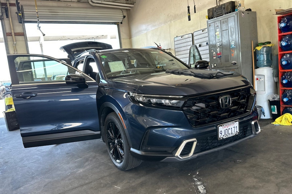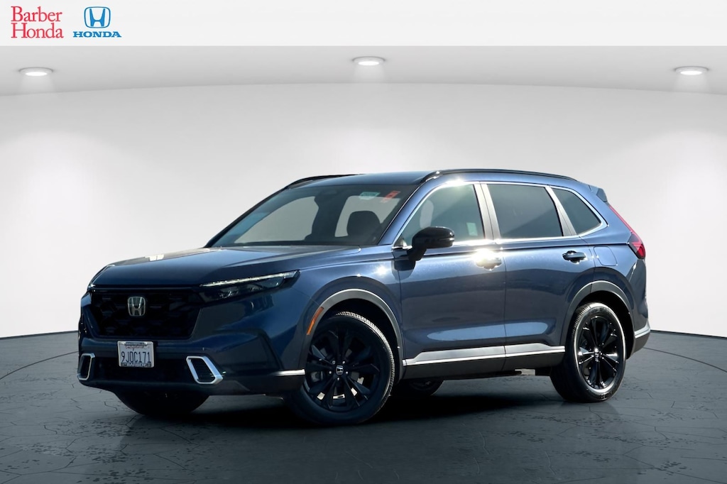 Better deals, finer service! This 2024 Canyon River Blue Metallic Honda CR-V Hybrid Sport Touring AWD is well equipped and includes these features and benefits: 2.0L I4 DOHC 16V, 12 Speakers, 4-Wheel Disc Brakes, 4.438 Axle Ratio, ABS brakes, Adaptive Cruise Control: Adaptive Cruise Control (ACC) with Low-Speed Follow, Air Conditioning, Alloy wheels, AM/FM radio: SiriusXM, Auto High-beam Headlights, Auto-dimming Rear-View mirror, Automatic temperature control, Blind Spot Information (BSI) System warning, Brake assist, Bumpers: body-color, Compass, Delay-off headlights, Driver door bin, Driver vanity mirror, Dual front impact airbags, Dual front side impact airbags, Electronic Stability Control, Exterior Parking Camera Rear, Four wheel independent suspension, Front anti-roll bar, Front Bucket Seats, Front Center Armrest, Front dual zone A/C, Front reading lights, Fully automatic headlights, Heated door mirrors, Heated Front Bucket Seats, Heated front seats, Heated steering wheel, Illuminated entry, Knee airbag, Leather Seat Trim, Leather Shift Knob, Leather steering wheel, Low tire pressure warning, Memory seat, Navigation system: Honda Satellite-Linked Navigation System, Occupant sensing airbag, Outside temperature display, Overhead airbag, Overhead console, Panic alarm, Passenger door bin, Passenger vanity mirror, Power door mirrors, Power driver seat, Power Liftgate, Power moonroof, Power passenger seat, Power steering, Power windows, Radio data system, Radio: Bose Premium Sound System w/Navigation, Rain sensing wipers, Rear anti-roll bar, Rear reading lights, Rear seat center armrest, Rear side impact airbag, Rear window defroster, Rear window wiper, Remote keyless entry, Security system, Speed control, Speed-sensing steering, Speed-Sensitive Wipers, Split folding rear seat, Spoiler, Steering wheel mounted audio controls, Telescoping steering wheel, Tilt steering wheel, Traction control, Trip computer, Turn signal indicator mirrors, Variably intermittent wipers, Wheels: 19" Berlina Black Alloy, and Wireless Apple CarPlay/Wireless Android Auto. 2.0L I4 DOHC 16V, 12 Speakers, 4-Wheel Disc Brakes, 4.438 Axle Ratio, ABS brakes, Adaptive Cruise Control: Adaptive Cruise Control (ACC) with Low-Speed Follow, Air Conditioning, Alloy wheels, AM/FM radio: SiriusXM, Auto High-beam Headlights, Auto-dimming Rear-View mirror, Automatic temperature control, Blind Spot Information (BSI) System warning, Brake assist, Bumpers: body-color, Compass, Delay-off headlights, Driver door bin, Driver vanity mirror, Dual front impact airbags, Dual front side impact airbags, Electronic Stability Control, Exterior Parking Camera Rear, Four wheel independent suspension, Front anti-roll bar, Front Bucket Seats, Front Center Armrest, Front dual zone A/C, Front reading lights, Fully automatic headlights, Heated door mirrors, Heated Front Bucket Seats, Heated front seats, Heated steering wheel, Illuminated entry, Knee airbag, Leather Seat Trim, Leather Shift Knob, Leather steering wheel, Low tire pressure warning, Memory seat, Navigation system: Honda Satellite-Linked Navigation System, Occupant sensing airbag, Outside temperature display, Overhead airbag, Overhead console, Panic alarm, Passenger door bin, Passenger vanity mirror, Power door mirrors, Power driver seat, Power Liftgate, Power moonroof, Power passenger seat, Power steering, Power windows, Radio data system, Radio: Bose Premium Sound System w/Navigation, Rain sensing wipers, Rear anti-roll bar, Rear reading lights, Rear seat center armrest, Rear side impact airbag, Rear window defroster, Rear window wiper, Remote keyless entry, Security system, Speed control, Speed-sensing steering, Speed-Sensitive Wipers, Split folding rear seat, Spoiler, Steering wheel mounted audio controls, Telescoping steering wheel, Tilt steering wheel, Traction control, Trip computer, Turn signal indicator mirrors, Variably intermittent wipers, Wheels: 19" Berlina Black Alloy, Wireless Apple CarPlay/Wireless Android Auto.