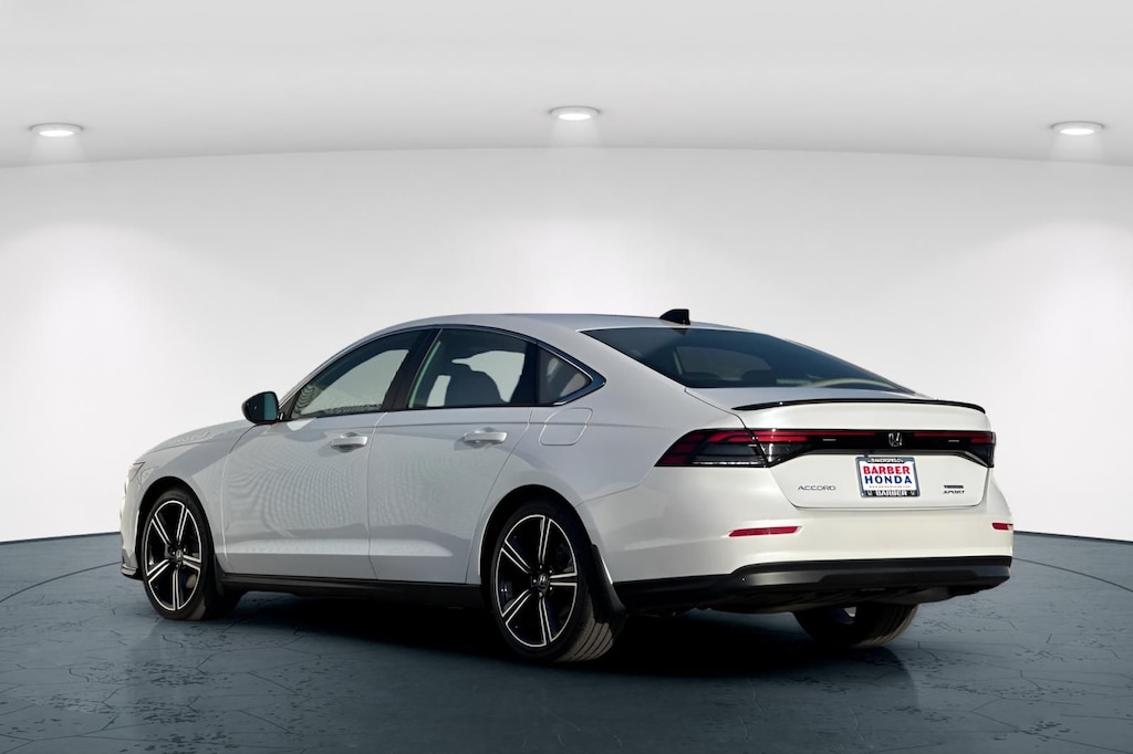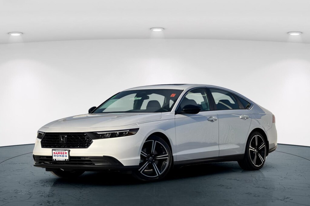 Better deals, finer service! This 2025 White Honda Accord Hybrid Sport FWD is well equipped and includes these features and benefits: 2.0L I4 DOHC 16V, 4-Wheel Disc Brakes, 8 Speakers, ABS brakes, Adaptive Cruise Control: Adaptive Cruise Control (ACC) with Low-Speed Follow, Air Conditioning, Alloy wheels, AM/FM radio, Apple CarPlay/Android Auto, Auto High-beam Headlights, Automatic temperature control, Blind Spot Information (BSI) System warning, Brake assist, Bumpers: body-color, Compass, Delay-off headlights, Driver door bin, Driver vanity mirror, Dual front impact airbags, Dual front side impact airbags, Electronic Stability Control, Emergency communication system: HondaLink, Exterior Parking Camera Rear, Fabric Seat Trim, Four wheel independent suspension, Front anti-roll bar, Front Bucket Seats, Front Center Armrest, Front dual zone A/C, Front reading lights, Fully automatic headlights, Heated Front Bucket Seats, Heated front seats, Illuminated entry, Knee airbag, Lane departure: Lane Keeping Assist System (LKAS) active, Leather Shift Knob, Leather steering wheel, Low tire pressure warning, Occupant sensing airbag, Outside temperature display, Overhead airbag, Overhead console, Panic alarm, Passenger door bin, Passenger vanity mirror, Power door mirrors, Power driver seat, Power moonroof, Power steering, Power windows, Radio data system, Radio: 180-Watt Audio System, Rear anti-roll bar, Rear reading lights, Rear seat center armrest, Rear side impact airbag, Rear window defroster, Remote keyless entry, Security system, Speed control, Speed-sensing steering, Speed-Sensitive Wipers, Split folding rear seat, Spoiler, Steering wheel mounted audio controls, Telescoping steering wheel, Tilt steering wheel, Traction control, Trip computer, Variably intermittent wipers, and Wheels: 19" x 8.5J Berlina Black. 2.0L I4 DOHC 16V, 4-Wheel Disc Brakes, 8 Speakers, ABS brakes, Adaptive Cruise Control: Adaptive Cruise Control (ACC) with Low-Speed Follow, Air Conditioning, Alloy wheels, AM/FM radio, Apple CarPlay/Android Auto, Auto High-beam Headlights, Automatic temperature control, Blind Spot Information (BSI) System warning, Brake assist, Bumpers: body-color, Compass, Delay-off headlights, Driver door bin, Driver vanity mirror, Dual front impact airbags, Dual front side impact airbags, Electronic Stability Control, Emergency communication system: HondaLink, Exterior Parking Camera Rear, Fabric Seat Trim, Four wheel independent suspension, Front anti-roll bar, Front Bucket Seats, Front Center Armrest, Front dual zone A/C, Front reading lights, Fully automatic headlights, Heated Front Bucket Seats, Heated front seats, Illuminated entry, Knee airbag, Lane departure: Lane Keeping Assist System (LKAS) active, Leather Shift Knob, Leather steering wheel, Low tire pressure warning, Occupant sensing airbag, Outside temperature display, Overhead airbag, Overhead console, Panic alarm, Passenger door bin, Passenger vanity mirror, Power door mirrors, Power driver seat, Power moonroof, Power steering, Power windows, Radio data system, Radio: 180-Watt Audio System, Rear anti-roll bar, Rear reading lights, Rear seat center armrest, Rear side impact airbag, Rear window defroster, Remote keyless entry, Security system, Speed control, Speed-sensing steering, Speed-Sensitive Wipers, Split folding rear seat, Spoiler, Steering wheel mounted audio controls, Telescoping steering wheel, Tilt steering wheel, Traction control, Trip computer, Variably intermittent wipers, Wheels: 19" x 8.5J Berlina Black.