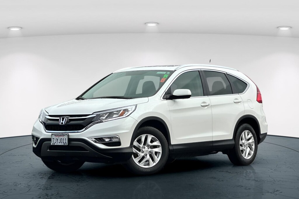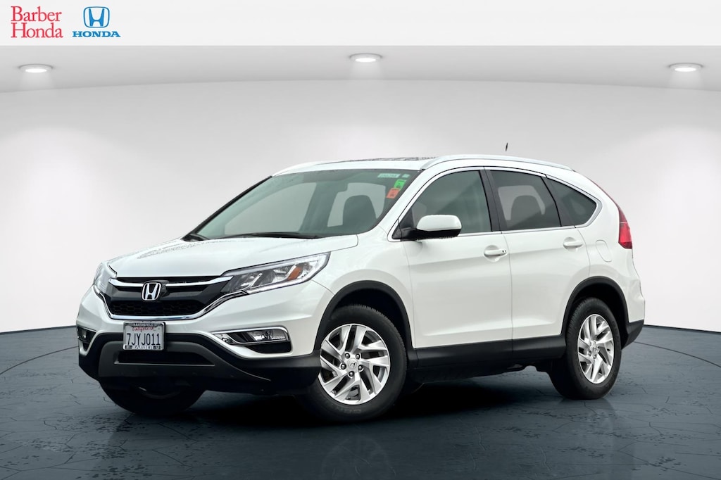 Better deals, finer service! This 2015 White Diamond Pearl Honda CR-V EX-L FWD is well equipped and includes these features and benefits: 17" Alloy Wheels, 4-Wheel Disc Brakes, 5.048 Axle Ratio, 7 Speakers, ABS brakes, Air Conditioning, Alloy wheels, AM/FM radio: SiriusXM, Auto-dimming Rear-View mirror, Automatic temperature control, Brake assist, Bumpers: body-color, CD player, Compass, Delay-off headlights, Driver door bin, Driver vanity mirror, Dual front impact airbags, Dual front side impact airbags, Electronic Stability Control, Exterior Parking Camera Rear, Four wheel independent suspension, Front anti-roll bar, Front Bucket Seats, Front Center Armrest, Front dual zone A/C, Front fog lights, Front reading lights, Heated door mirrors, Heated Front Bucket Seats, Heated front seats, Illuminated entry, Leather Seat Trim, Leather Shift Knob, Low tire pressure warning, Occupant sensing airbag, Outside temperature display, Overhead airbag, Overhead console, Panic alarm, Passenger door bin, Passenger vanity mirror, Power door mirrors, Power driver seat, Power moonroof, Power steering, Power windows, Radio data system, Radio: AM/FM/CD/SiriusXM Audio System, Rear anti-roll bar, Rear seat center armrest, Rear window defroster, Rear window wiper, Remote keyless entry, Roof rack: rails only, Security system, Speed control, Speed-sensing steering, Speed-Sensitive Wipers, Split folding rear seat, Steering wheel mounted audio controls, Tachometer, Telescoping steering wheel, Tilt steering wheel, Traction control, Trip computer, and Variably intermittent wipers. 20 year 250,000 mile warranty See dealer for details.