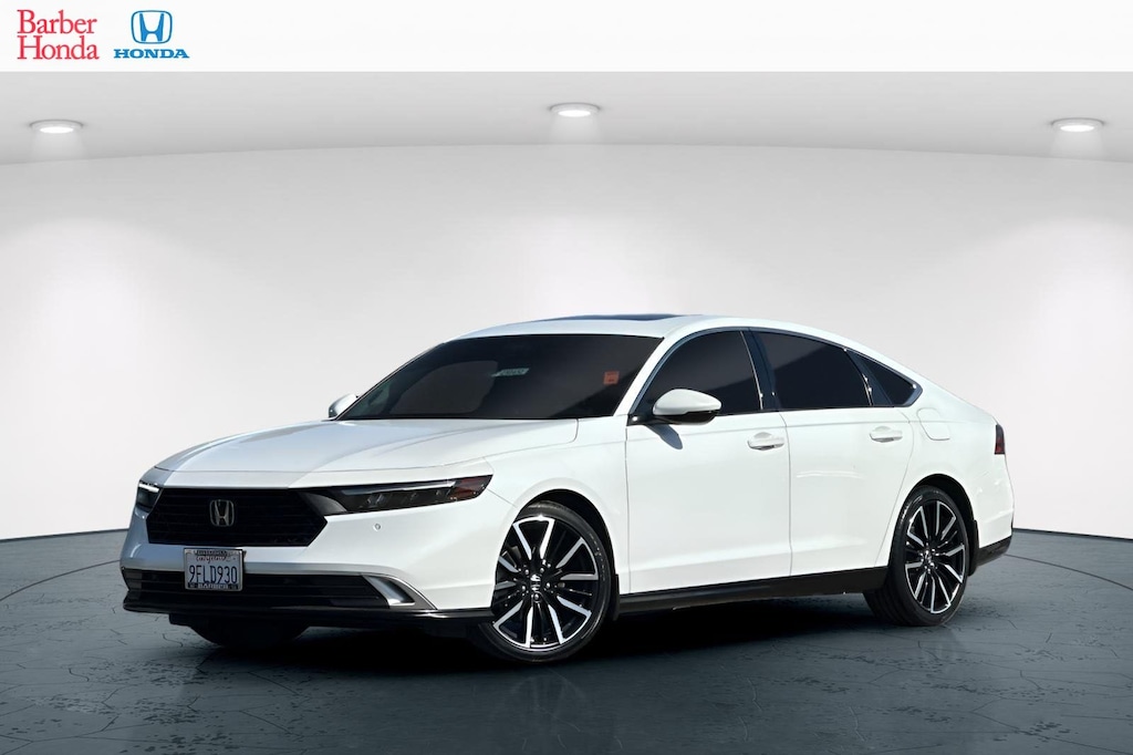 Better deals, finer service! This 2023 Platinum White Honda Accord Hybrid Touring FWD is well equipped and includes these features and benefits: 2.0L 16V DOHC, 12 Speakers, 4-Wheel Disc Brakes, ABS brakes, Adaptive Cruise Control: Adaptive Cruise Control (ACC) with Low-Speed Follow, Adaptive suspension, Air Conditioning, Alloy wheels, AM/FM radio, Apple CarPlay/Android Auto, Auto High-beam Headlights, Auto-dimming Rear-View mirror, Automatic temperature control, Bose Premium Sound System, Brake assist, Bumpers: body-color, Compass, Delay-off headlights, Driver door bin, Driver vanity mirror, Dual front impact airbags, Dual front side impact airbags, Electronic Stability Control, Emergency communication system: HondaLink, Exterior Parking Camera Rear, Four wheel independent suspension, Front anti-roll bar, Front Bucket Seats, Front Center Armrest, Front dual zone A/C, Front reading lights, Fully automatic headlights, Heads-Up Display, Heated & Ventilated Front Bucket Seats, Heated door mirrors, Heated front seats, Heated rear seats, Illuminated entry, Knee airbag, Lane departure: Lane Keeping Assist System (LKAS) active, Leather Shift Knob, Leather steering wheel, Leather-Trimmed Seat Trim, Low tire pressure warning, Memory seat, Navigation system: Google Built-In, Occupant sensing airbag, Outside temperature display, Overhead airbag, Overhead console, Panic alarm, Passenger door bin, Passenger vanity mirror, Power door mirrors, Power driver seat, Power moonroof, Power passenger seat, Power steering, Power windows, Radio data system, Rain sensing wipers, Rear anti-roll bar, Rear reading lights, Rear seat center armrest, Rear side impact airbag, Rear window defroster, Remote keyless entry, Security system, Speed control, Speed-sensing steering, Speed-Sensitive Wipers, Split folding rear seat, Steering wheel mounted audio controls, Telescoping steering wheel, Tilt steering wheel, Traction control, Trip computer, Turn signal indicator mirrors, Variably intermittent wipers, Ventilated front seats, and Wheels: 19" x 8.5J Berlina Black. 20 year 250,000 mile warranty See dealer for details, 2.0L 16V DOHC.