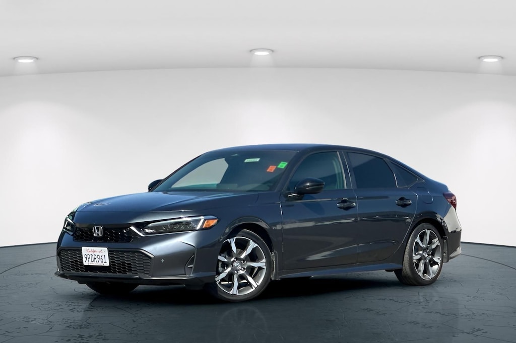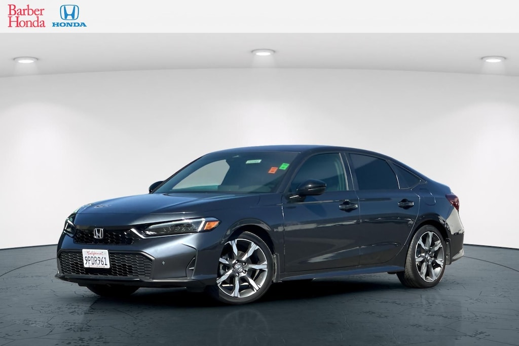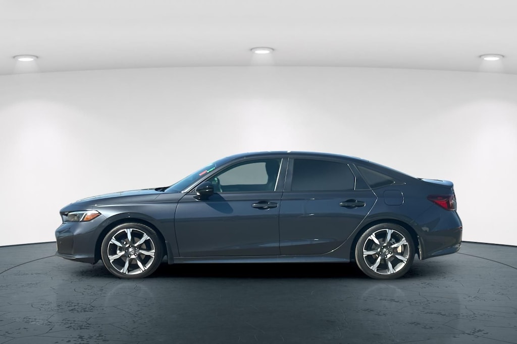 Better deals, finer service! This 2025 Nh-731 Honda Civic Hybrid Sport FWD is well equipped and includes these features and benefits: 2.0L 16V DOHC, ABS brakes, Active Cruise Control, Alloy wheels, Electronic Stability Control, Front dual zone A/C, Heated door mirrors, Heated Front Bucket Seats, Heated front seats, Illuminated entry, Low tire pressure warning, Power moonroof, Remote keyless entry, Traction control, 4-Wheel Disc Brakes, 8 Speakers, Adaptive Cruise Control: Adaptive Cruise Control (ACC) with Low-Speed Follow, Air Conditioning, AM/FM radio, Apple CarPlay/Android Auto, Auto High-beam Headlights, Automatic temperature control, Blind Spot Information (BSI) System warning, Brake assist, Bumpers: body-color, Cloth/Leatherette Seat Trim, Delay-off headlights, Driver door bin, Driver vanity mirror, Dual front impact airbags, Dual front side impact airbags, Emergency communication system: HondaLink, Exterior Parking Camera Rear, Four wheel independent suspension, Front anti-roll bar, Front Bucket Seats, Front Center Armrest, Front reading lights, Fully automatic headlights, Knee airbag, Leather Shift Knob, Leather steering wheel, Occupant sensing airbag, Outside temperature display, Overhead airbag, Panic alarm, Passenger door bin, Passenger vanity mirror, Power door mirrors, Power steering, Power windows, Radio data system, Radio: 180-Watt Audio System, Rear anti-roll bar, Rear seat center armrest, Rear side impact airbag, Rear window defroster, Security system, Speed control, Speed-sensing steering, Split folding rear seat, Steering wheel mounted audio controls, Tachometer, Telescoping steering wheel, Tilt steering wheel, Trip computer, Variably intermittent wipers, and Wheels: 18" Gloss Black Alloy. 2.0L 16V DOHC, ABS brakes, Active Cruise Control, Alloy wheels, Electronic Stability Control, Front dual zone A/C, Heated door mirrors, Heated Front Bucket Seats, Heated front seats, Illuminated entry, Low tire pressure warning, Power moonroof, Remote keyless entry, Traction control.